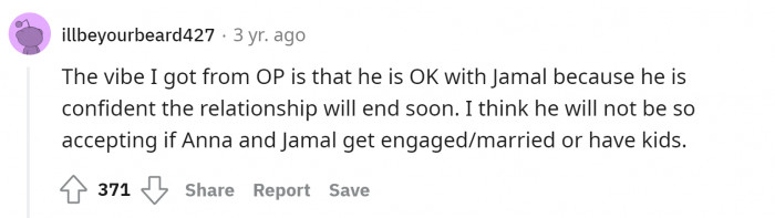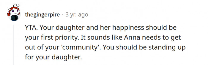 Since the disagreement, Anna has been staying with Jamal and refuses to speak with her father. Anna's mother is standing by her husband, but others have told the Redditor that he needs to apologize to his daughter.