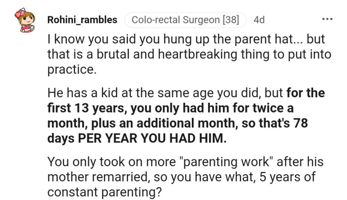 "You only took on more 'parenting work' after his mother remarried."