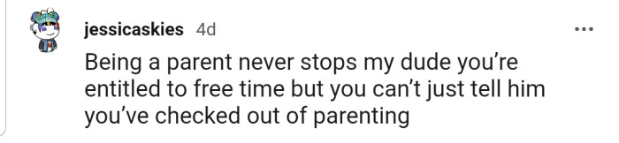 "Being a parent never stops, my dude."