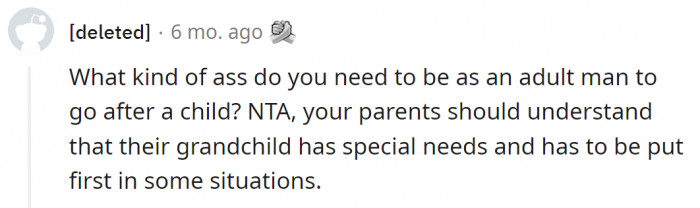 Unfortunately, what was supposed to be a time of celebration for OP's dad turned into a fracas. Apparently, OP's 45-year-old brother picked on their 14-year-old autistic son, and they weren't going to stand for it.