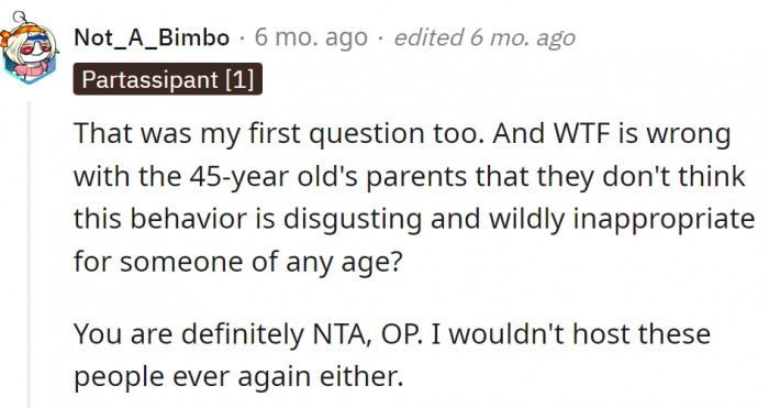 "You are definitely NTA, OP. I wouldn't host these people ever again either."