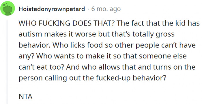 "Who licks food so other people can’t have any? Who wants to make it so that someone else can’t eat too?"