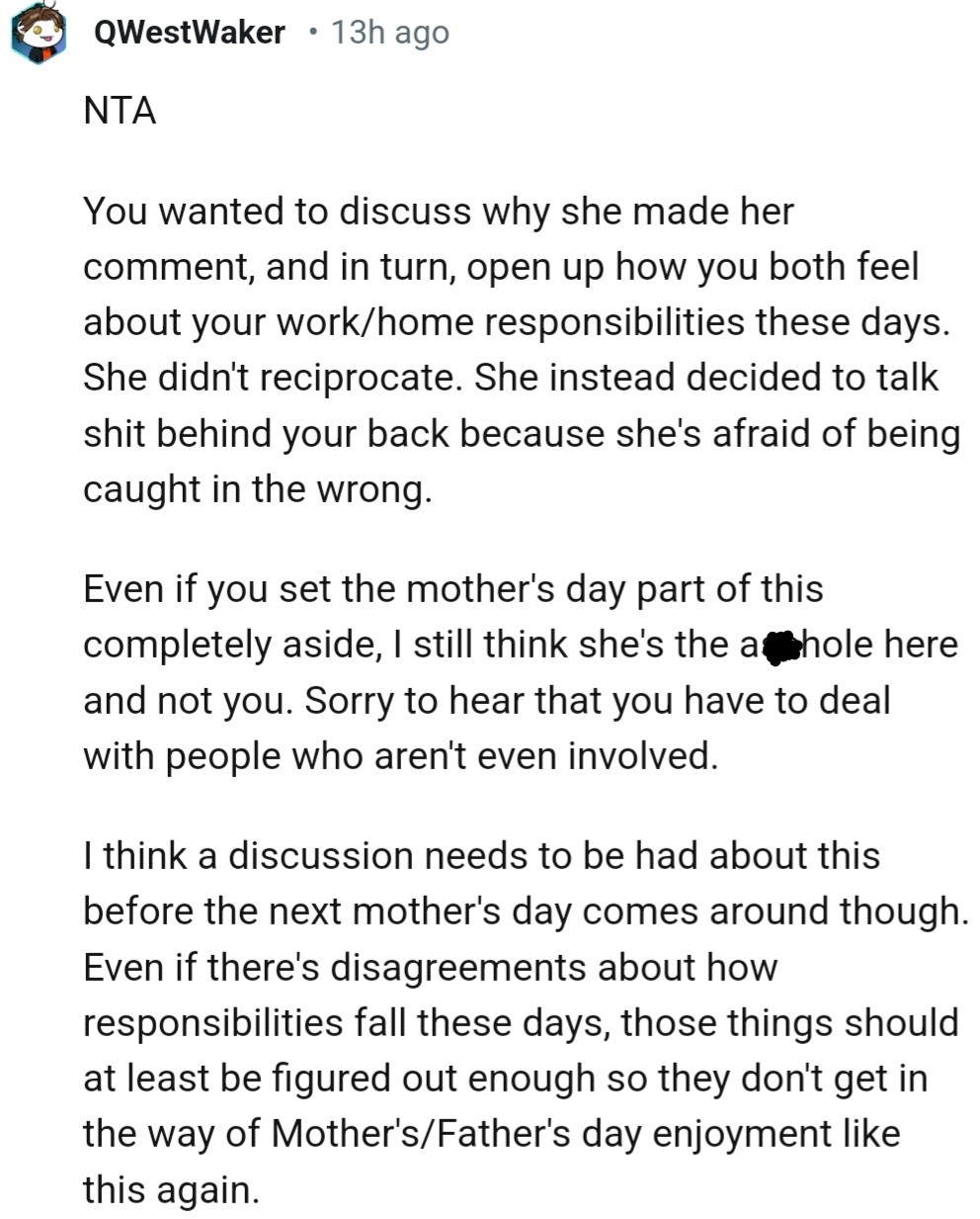 OP made sure to go all out for his wife every Mother’s Day. We’re talking fancy meals, heartfelt cards, thoughtful gifts – the whole nine yards.