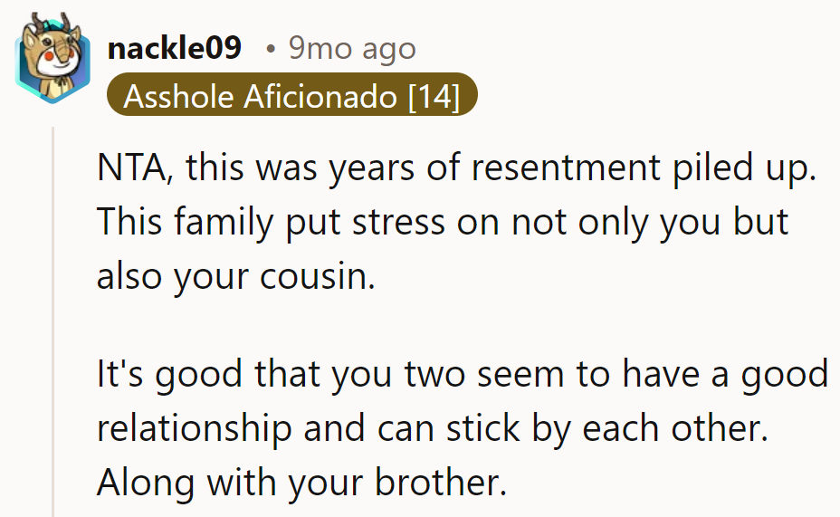 In this case, the young woman’s reaction to her cousin receiving preferential treatment on her birthday suggests deeper issues related to validation and recognition within the family structure.