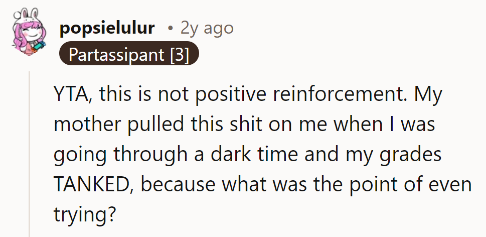 In a certain Reddit post, a mother shared a story that perfectly illustrates how positive reinforcement can backfire. She decided to reward her daughter for improving her grades and school attitude, despite the daughter's grades still being lower than her brother's, who consistently performed better.
