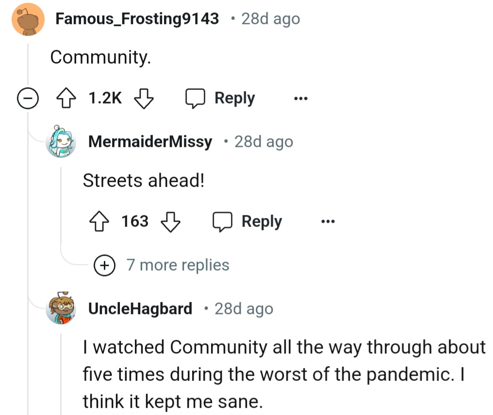 Reddit.comThe Therapeutic Benefits of Comfort TV