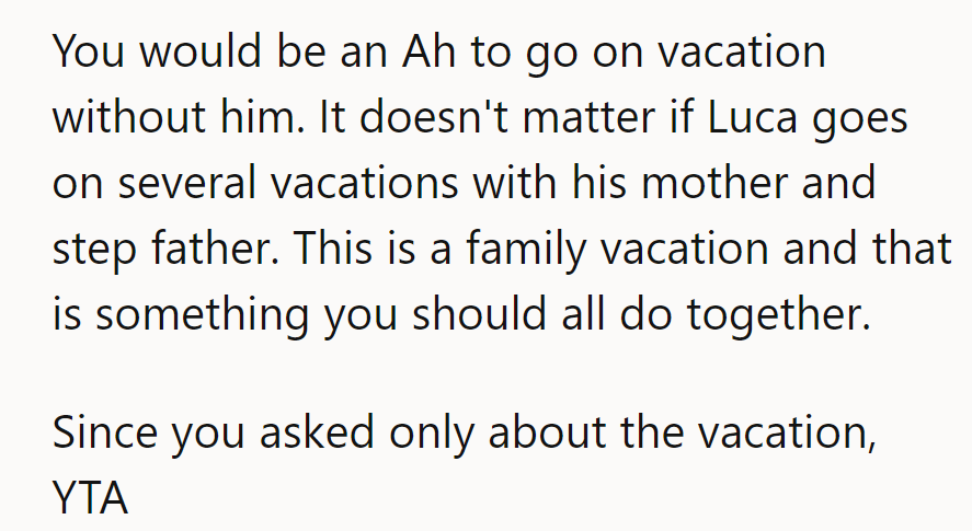 It's not about the quantity of vacations; it's about Luca spending quality time with his dad.