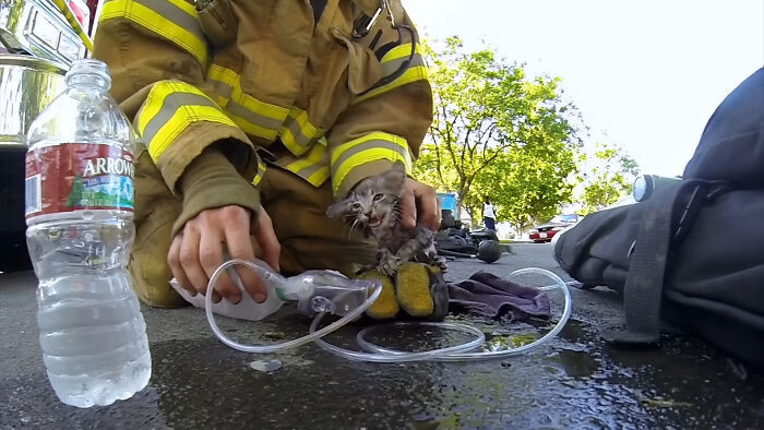 "Australian Firefighter feeding a koala some water after a wildfire. "