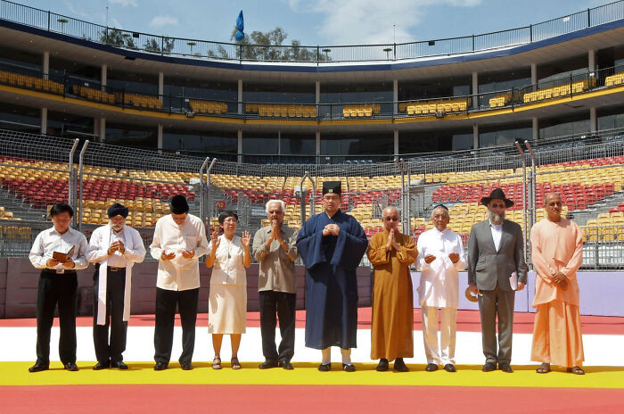 "10 religious faiths of Singapore coming together to bless the F1 track. Hearing about religious tension in other countries helps me to never take peace for granted and know that peace is always possible."