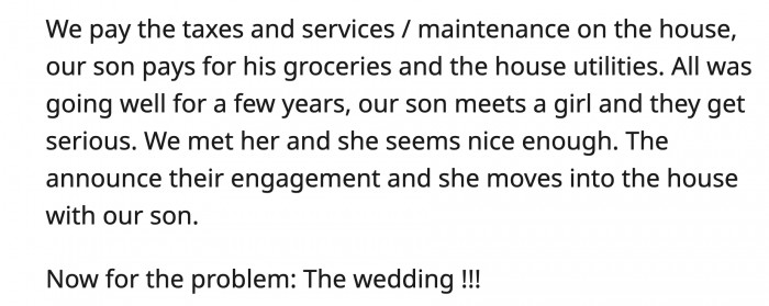 After getting engaged, their son's girlfriend moved in at OP's house in Pennsylvania. All was going well until wedding preparations started.