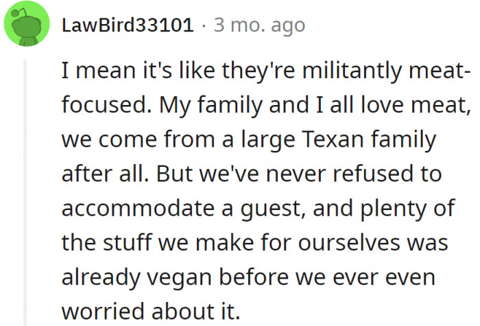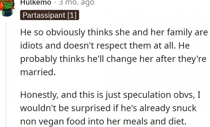 This situation underscores the need for mutual respect in relationships, particularly regarding deeply personal choices like diet.