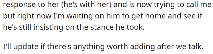 Apparently, his mom's opinion matters more to him than the opinion of his future wife