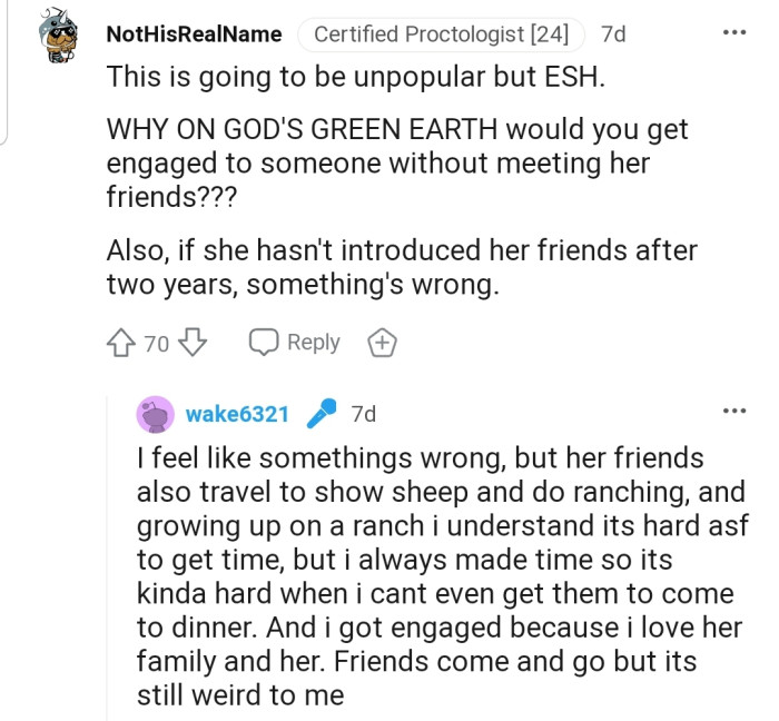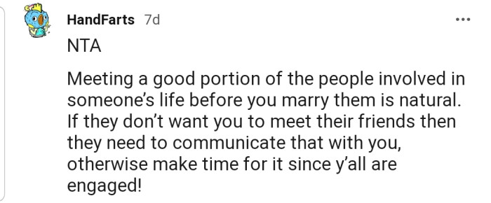 Reddit.comOn the other hand, OP's fiancée isn't forthcoming about introducing him to her own friends