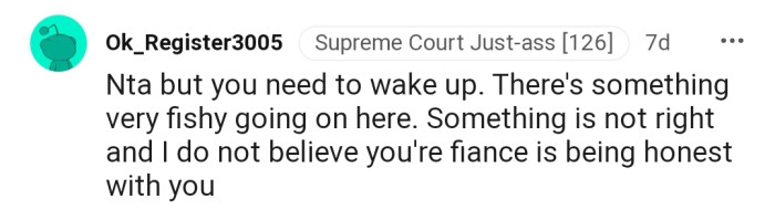 "Something is not right and I do not believe you're fiancé is being honest with you"