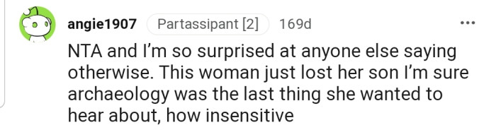 "This woman just lost her son; I’m sure archaeology was the last thing she wanted to hear about"