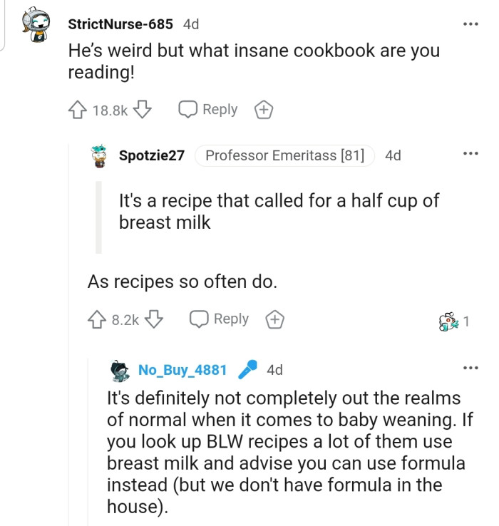 "He’s weird, but what insane cookbook are you reading?!"