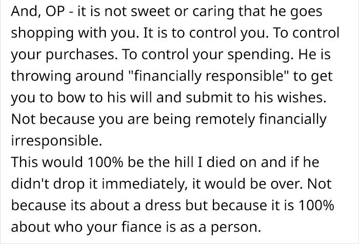 Redditors were unanimous in their decision and considered the fiancé's behavior to be controlling.