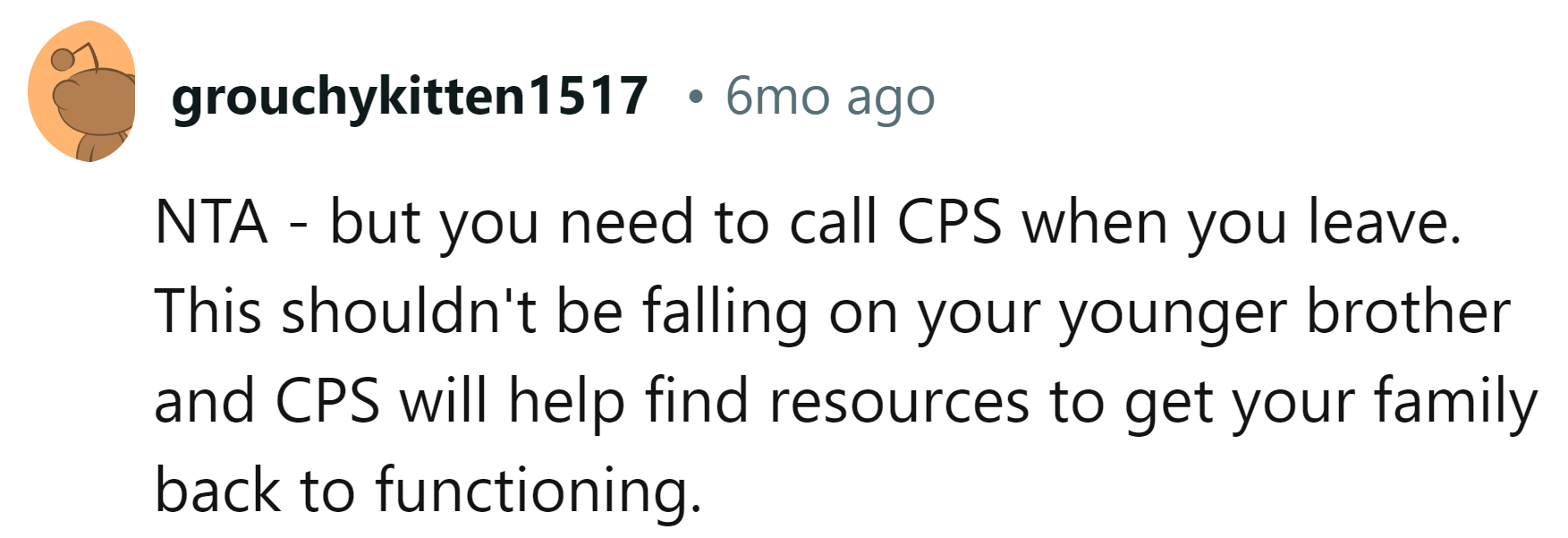 The Redditor's brother, Ollie, has taken over caring for their siblings, and now the OP feels guilty about leaving.