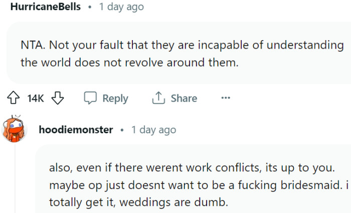 Woman With A Demanding And Unpredictable Job Refuses To Be A Bridesmaid, Her Family Keeps On Pushing