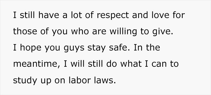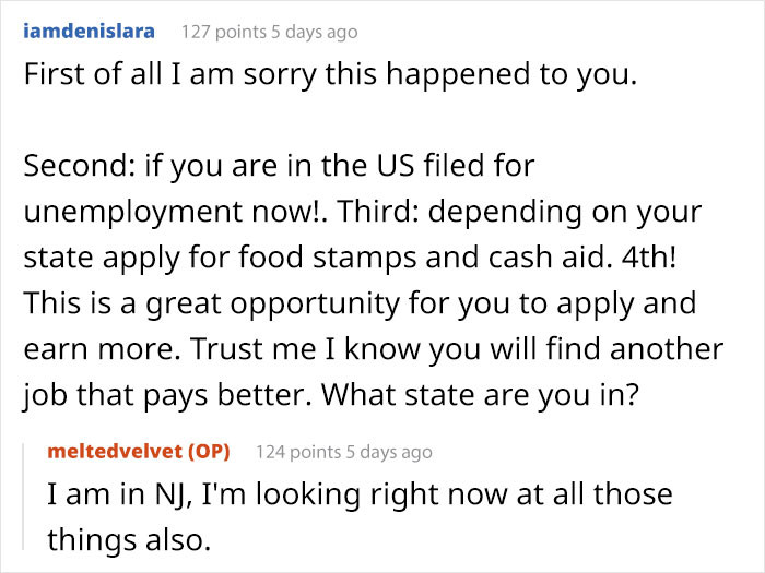 Perhaps even more unsettling is that the Redditor is not the first person to have been fired from her workplace for the same reason. One of her coworkers said, "Another girl was fired after she had a miscarriage about a year ago, except hers was very public as she was in excruciating pain."