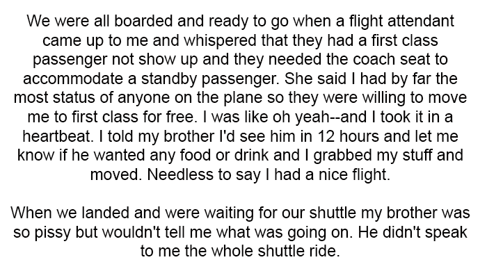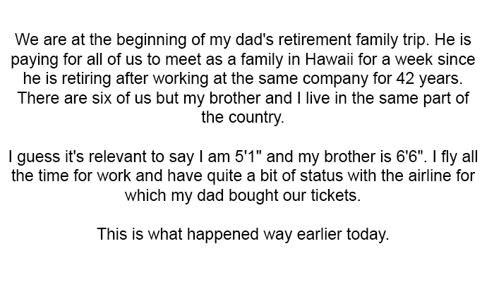AITA For Keeping A First-Class Upgrade Instead Of Offering It To My Taller Brother