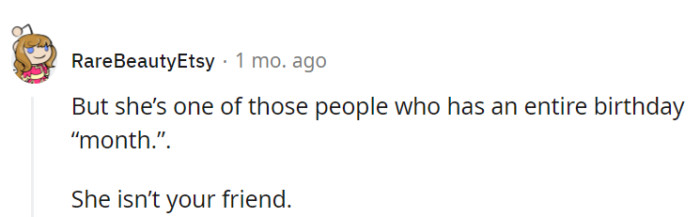Now, was the narrator taking advantage of her friend's generosity, or did Daphne have unrealistic expectations for her gift? Just take a look at the original post below...