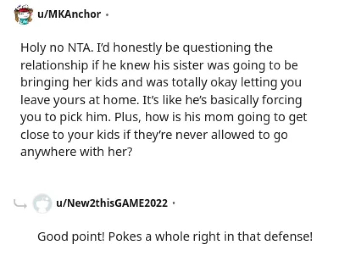 RedditThe OP was invited to an adults-only family trip by the FMIL.