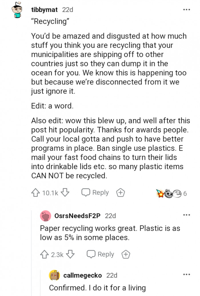 "Recycling" might just be the biggest scam. And according to this Redditor, "we just ignore it."