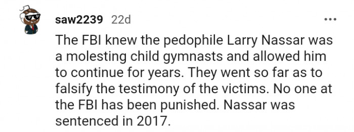 "The FBI knew that pedophile Larry Nassar was molesting child gymnasts and allowed him to continue for years"