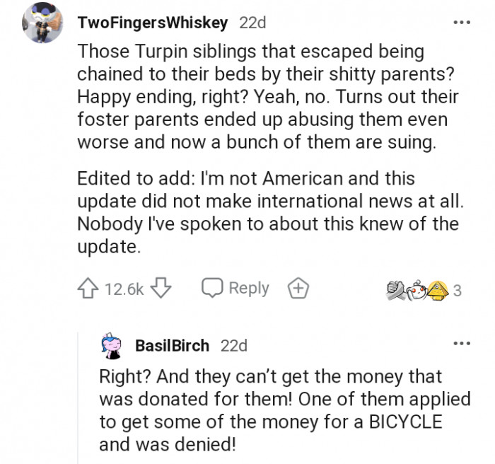 "Those Turpin siblings that escaped being chained to their beds by their terrible parents"
