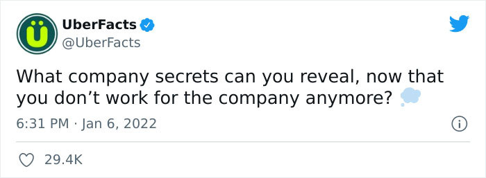 The popular Twitter account UberFacts asked its 13.6M followers, “What company secrets can you reveal now that you don’t work for the company anymore?”