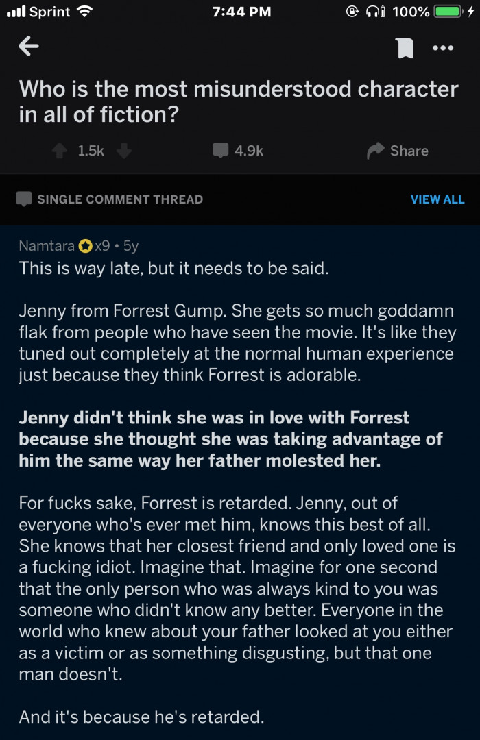 Read on as your entire perception of Jenny, and by extension the character development and story of Forrest Gump, is dismantled.