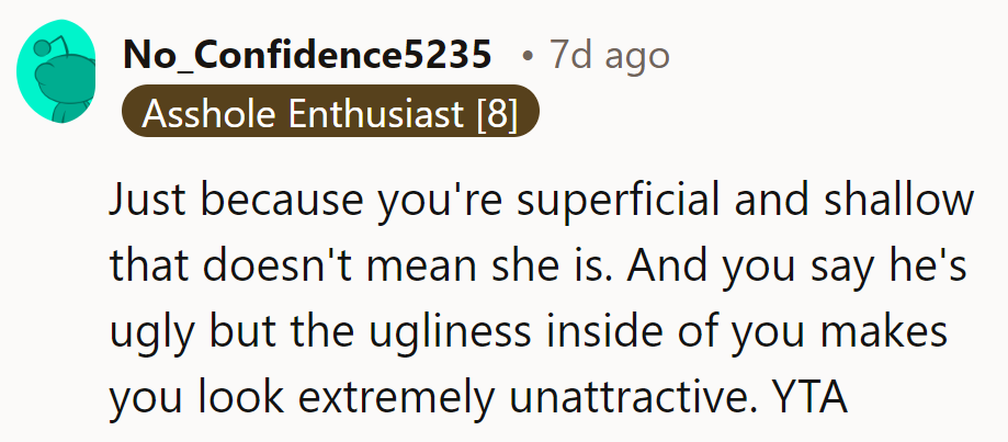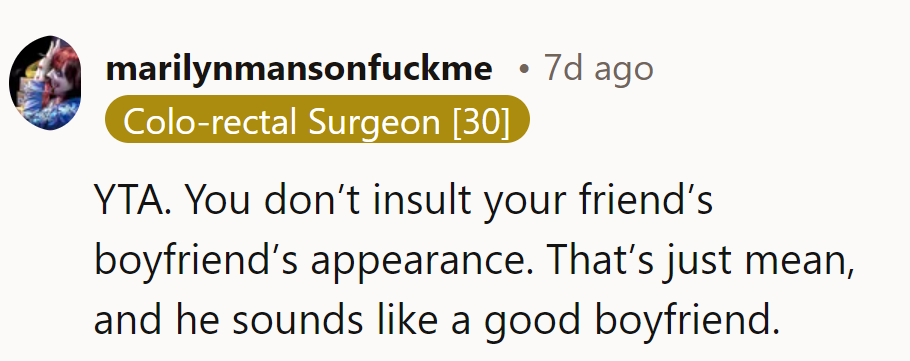 "You don't insult your friend's boyfriend's appearance."