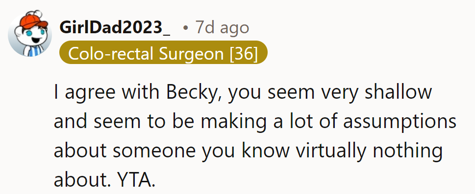 "Just because you're superficial and shallow, that doesn't mean she is."