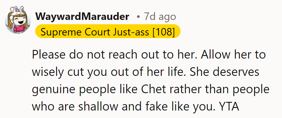 "Allow her to wisely cut you out of her life."