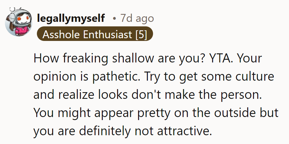 "You might appear pretty on the outside, but you are definitely not attractive."