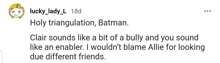 Some commenters have even accused her of handling the situation poorly by acting in defense of Claire, who seems to have been treating Allie poorly for a long time.