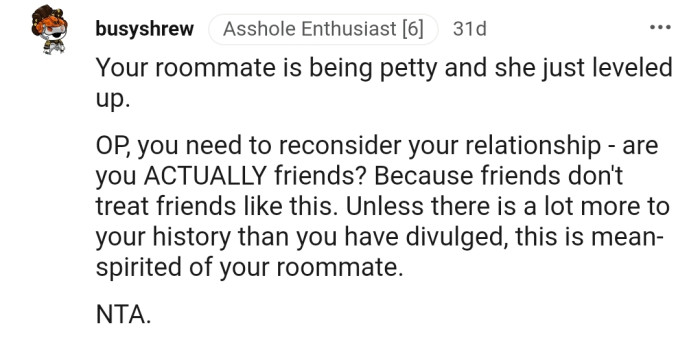 Many Redditors had questions for OP regarding her relationship with her roommate, as they believe OP and her roommate aren't treating each other like true friends.