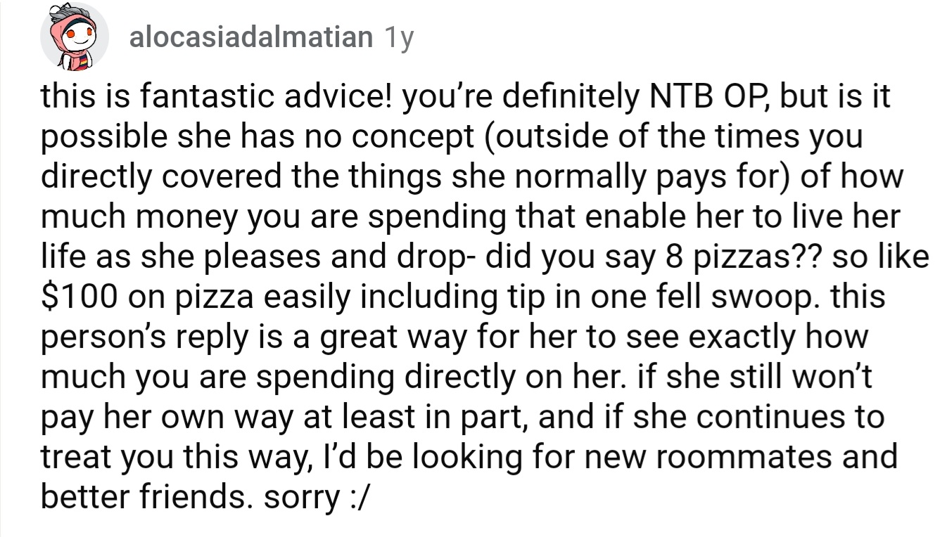 It all began at a cozy gathering of fourteen, where our narrator’s (Original Poster) best friend and roommate took charge of the refreshments. The menu? Eight pizzas at $6 each—a pretty sweet deal. Little did OP know, this event would serve up more than just cheesy slices; it would also bring a hefty side of drama.