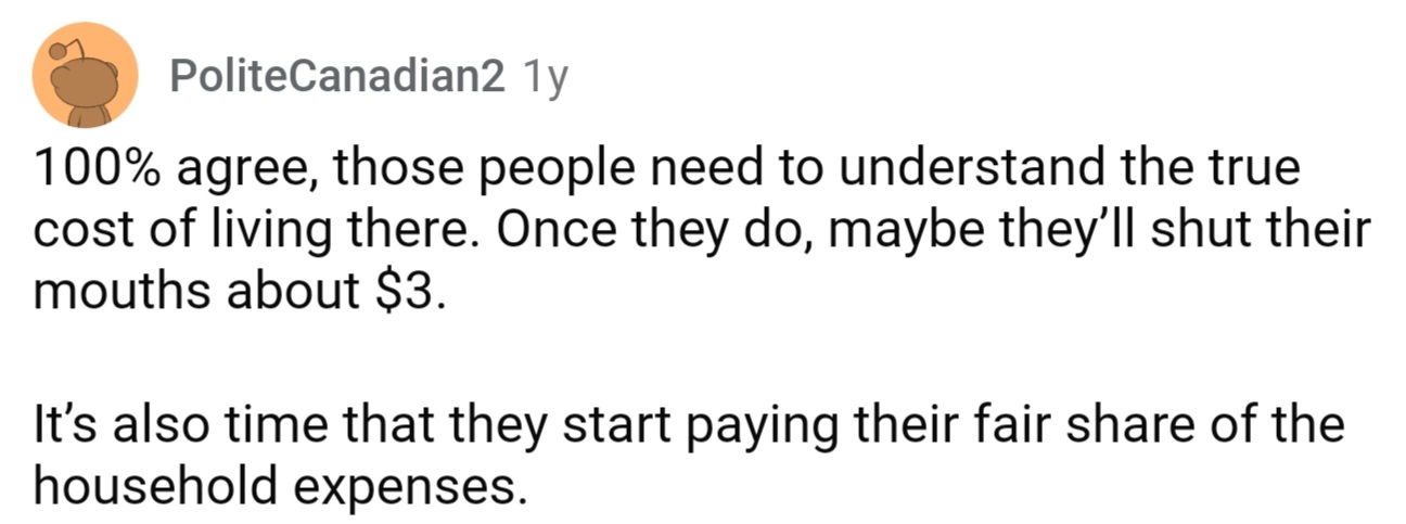 "It's also time that they start paying their fair share of the household expenses "