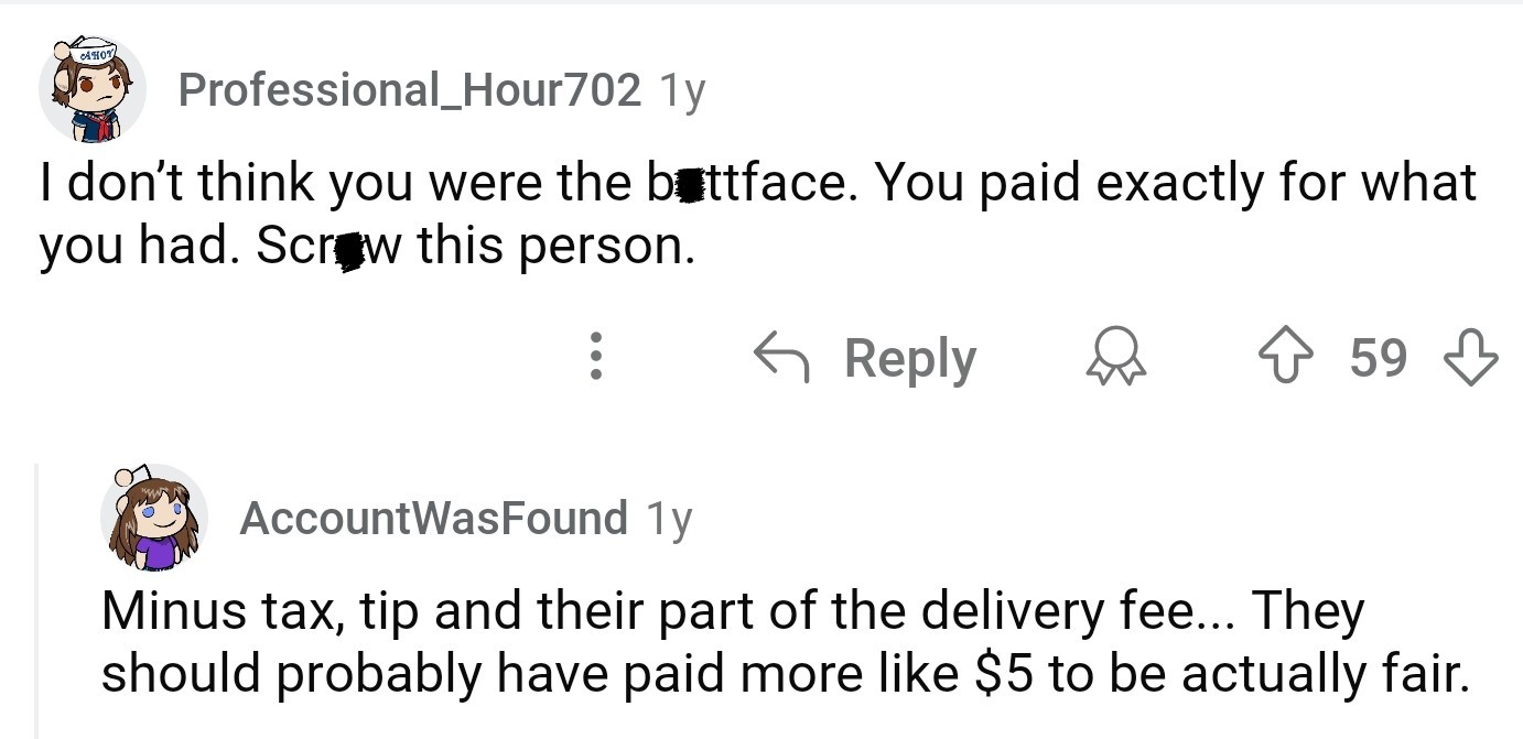 But OP confronted her this time, only to be told that offering $3 was, indeed, "weird." Attempts to clarify what amount would be appropriate were met with dismissals and a plea to "drop it."