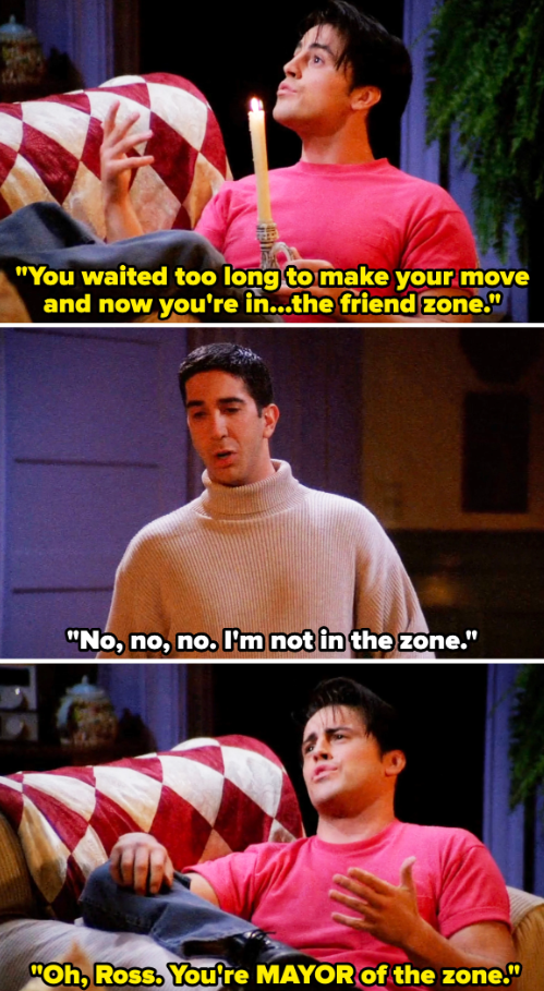 3: "Friends" is credited with popularizing the term "friend zone" thanks to the episode "The One with the Blackout," where Joey tells Ross that he's stuck in the friend zone with Rachel.