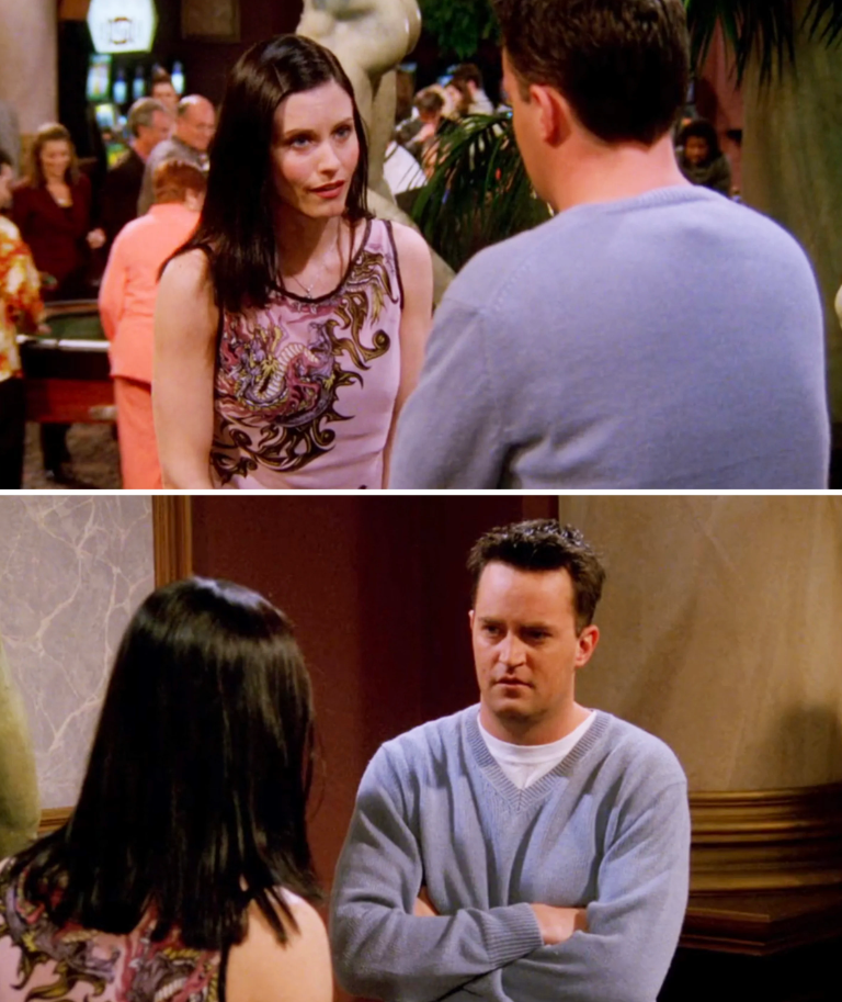 Initially, Monica and Chandler were just going to sleep together as "a big, quick, funny mistake," but after the audience's reactions, the creators decided to test out Monica and Chandler as a couple.