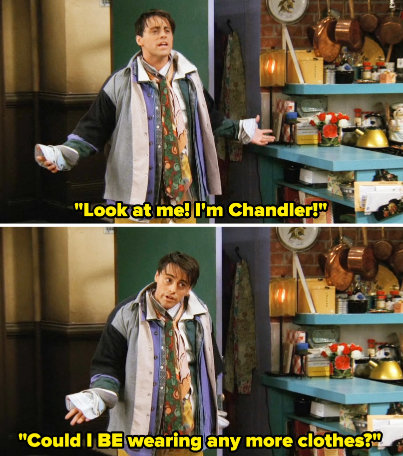 19: In "The One Where No One's Ready," featuring the memorable scene where Joey wears all of Chandler's clothes, the illusion of layered clothing was created. However, costume designer Debra McGuire revealed that "it opened from the back...it was actually one garment that you walked into." Despite appearing as multiple layers, it was a single piece of clothing.