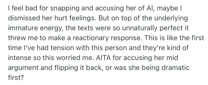 “YTA. Maybe she did use chatGPT to help articulate her feelings to you and then you respond like that.“