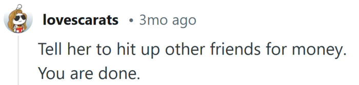 In the end, the OP’s story is a reminder that even strong friendships can wobble when money enters the mix. But standing up for your own limits isn’t cold — it’s how healthy relationships survive, and sometimes a well-placed boundary is exactly what keeps things from falling apart.