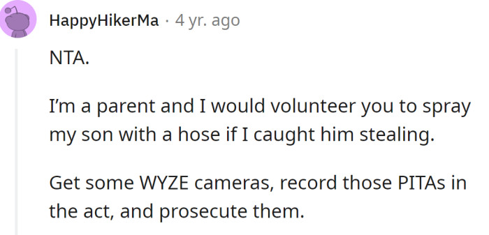 Redditors told the OP that they are not in the wrong for spraying children who steal with a garden hose, but they also advised them to consider calling the police next time or installing security cameras. But tell us, what would you do if you were in the OP's shoes?