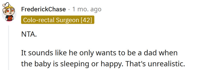 Seems like he doesn't want to be a dad at all.