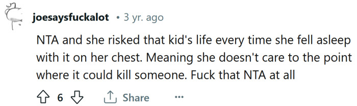 The OP's grandmother used to take her brother from his crib and have him sleep on her chest despite being asked not to by the Redditor's mom.