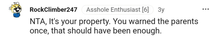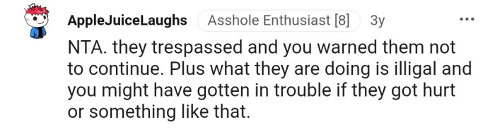 OP was scared that this reckless behavior could put them in legal jeopardy since the activities were performed on their property. And so, they warned the parents to keep their kids in check.